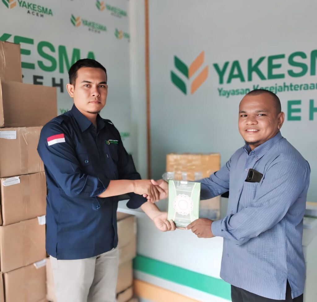 SMP IT Al Farabi Bilingual School menerima waqaf Al Qur’an dari YAKESMA Aceh. Penyerahan Al-Qur’an tersebut berlangsung di kantor yakesma Aceh serta diterima langsung oleh Direktur Pendidikan Yayasan KKIA Syakir Daulay. Hal ini disampaikan langsung oleh Kepala SMP IT Al Farabi Bilingual School, Siti Kembang Ati, S.Pd, Senin (10/02/2025).
